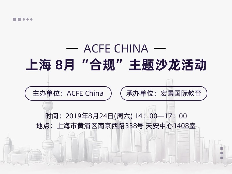 说好的ACFE China上海 8月的线下沙龙活动,我们来啦!亲爱的会员朋友们,本期上海场线下活动的主题,依然是“合规, Compliance”...