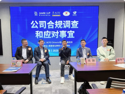 2025年9月12日下午,由ACFE China、君合律师事务所与致同会计师事务所联合举办的"企业合规调查与应对事宜"专题沙龙在君合律师事务所上海办公室成功举办。本次活动吸引了来自各行业的近70位企业法务、合规负责人、高管和律师参与,现场座无虚席,交流气氛热烈...